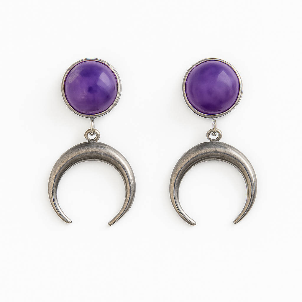 Statement Style: These earrings transcend standard accessories, making a bold statement with their design and the symbolism of the Amethyst and crescent moon charm.
