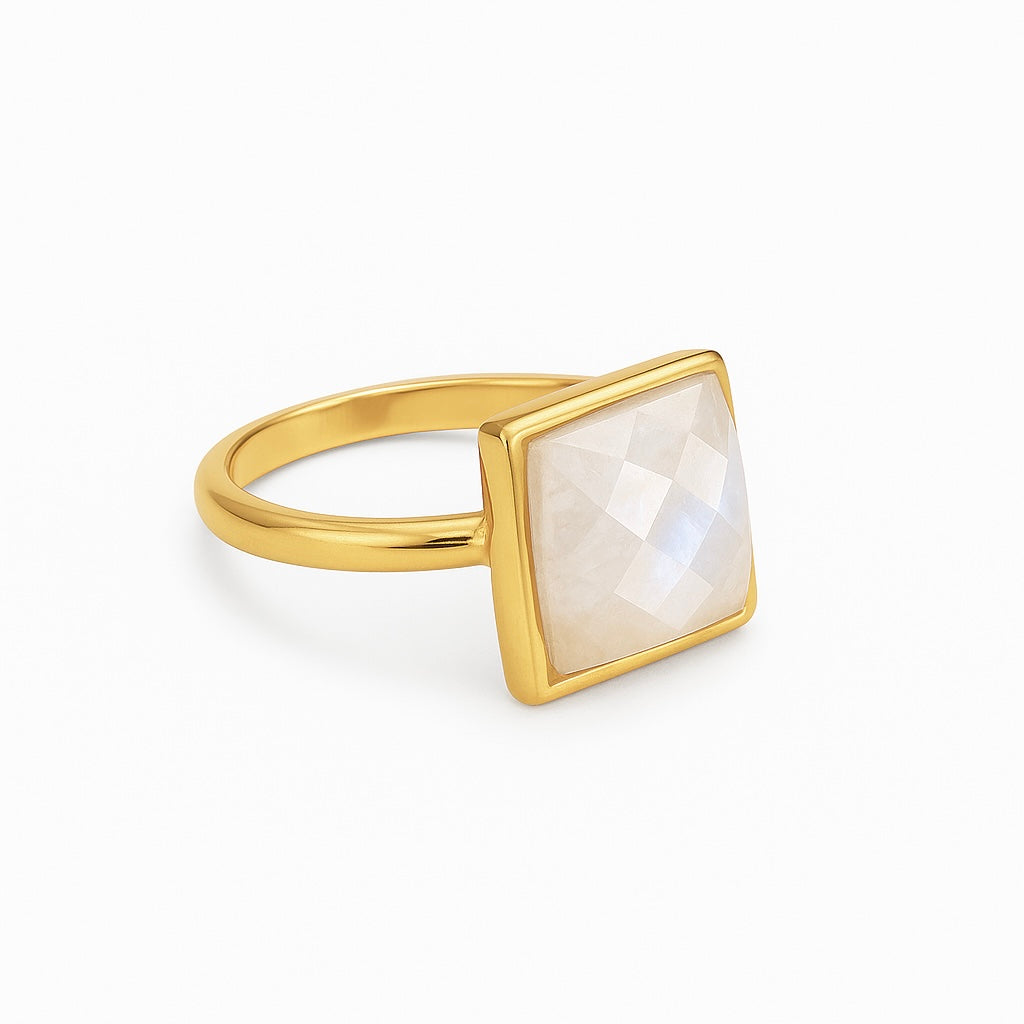A luminous portal to intuition and inner light, this handcrafted rainbow moonstone ring embodies quiet strength and spiritual clarity. The faceted square-cut stone shimmers with ethereal flashes, symbolizing cycles, self-discovery, and feminine wisdom. Designed with a hidden adjustable band for a seamless look, this piece blends everyday wearability with mystical energy. Handmade in our home studio, it’s a talisman for those drawn to the moon’s rhythm and the magic of transformation.